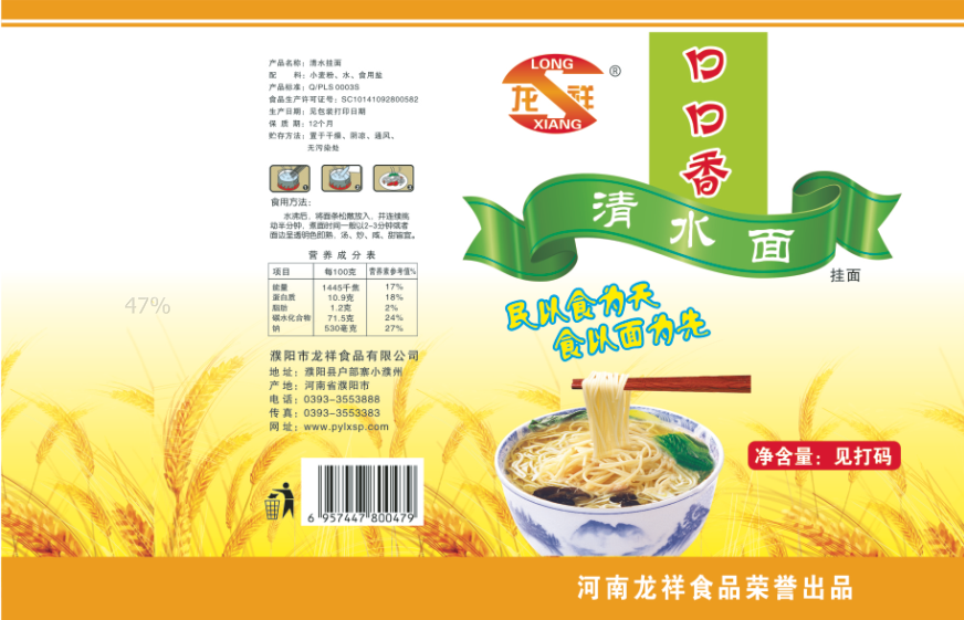濮陽(yáng)市龍祥食品有限公司位于河南省濮陽(yáng)縣戶部寨鎮(zhèn)小濮州,始建于1994年,前期投資200萬(wàn)元,經(jīng)過幾年的努力,大力開發(fā)市場(chǎng),由于市場(chǎng)的需求量急劇上升,出現(xiàn)供不應(yīng)求,于2004年擴(kuò)建,建成一座新型的現(xiàn)代化面粉加工企業(yè),并擁有全國(guó)先進(jìn)全自動(dòng)生產(chǎn)設(shè)備一套,產(chǎn)量由以前的100噸/天,提高到現(xiàn)在400噸/天。 2012年再次擴(kuò)大規(guī)模申請(qǐng)為濮陽(yáng)市龍祥食品有限公司,注冊(cè)資金500萬(wàn)元。2012年又投資800萬(wàn)元新建掛面生產(chǎn)線一條,日產(chǎn)掛面50噸。龍祥食品有限公司現(xiàn)有職工120余人,總工程師1人,專業(yè)技術(shù)人員10人,經(jīng)濟(jì)師1人,會(huì)計(jì)師1人,銷售人員2人,優(yōu)秀專業(yè)人員20余人。  龍祥公司自創(chuàng)建以來,社會(huì)效益十分可觀。公司一直以“今天的質(zhì)量,明天的市場(chǎng)”為信念,“一切為了客戶需求,竭誠(chéng)追求完美品質(zhì)”為企業(yè)宗旨,走專業(yè)化經(jīng)營(yíng)和職業(yè)化管理的路子。